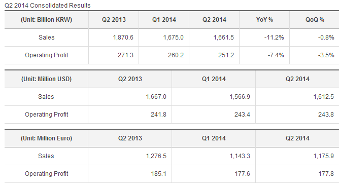 韩国当地时间2014年7月30日,中国轮胎商业网-媒体中心消息,韩泰轮胎有限公司发布其半年运营成绩,销售和利润均出现下滑。其中第二季度利润下降7.4%和销售收入下降11.2%其财务报告显示。