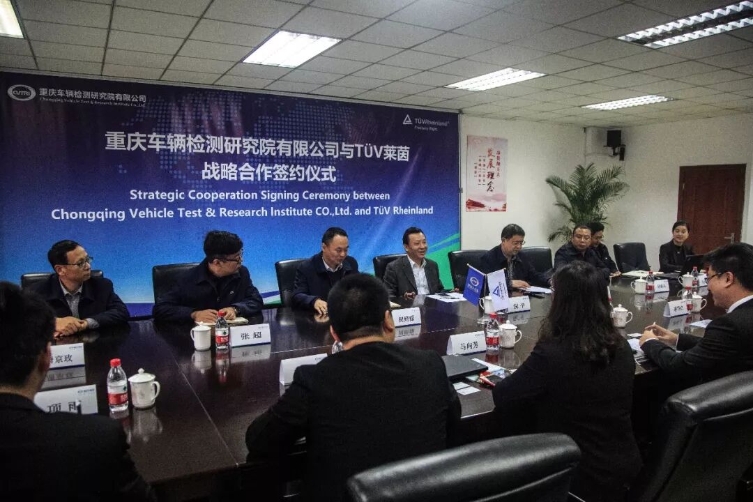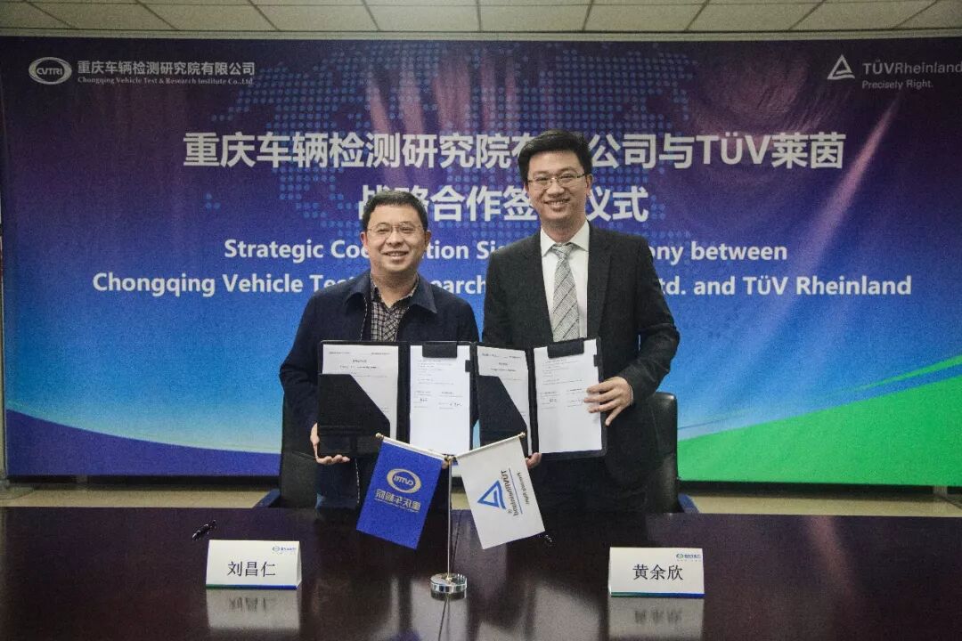 2018年3月13日, 重庆 ——德国莱茵TÜV大中华区(以下简称TÜV莱茵)与重庆车辆检测研究院有限公司(以下简称:重庆车检院)签署了战略合作协议,双方将各自发挥优势,在汽车整车及零部件型式认证、验证与开发试验以及市场开拓等领域加强长期战略合作。