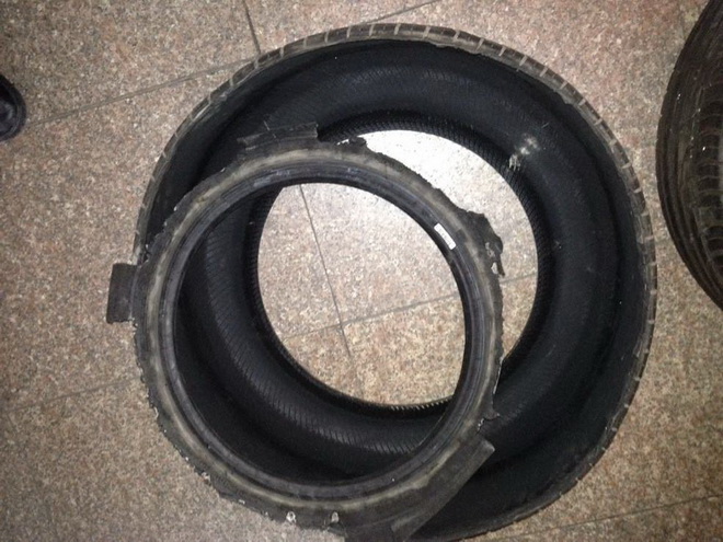 (13)、 胎圈变形:趾口破损,或胎圈钢丝变形。