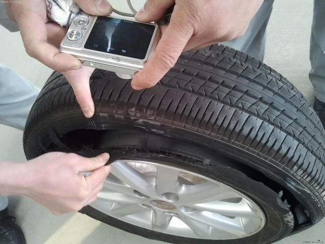 原因:轮胎行驶于坏路段或泥泞路段,车速过快,被尖锐物所割破。