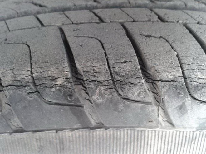 (2)、 花纹沟裂:无机械损伤的外胎花纹沟基部开裂, 严重的可见到带束层束层。