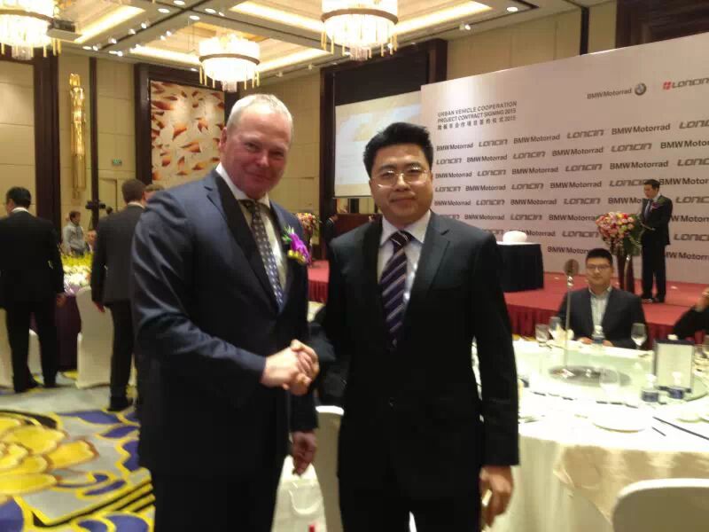 宝马摩托车总裁史蒂芬•夏勒与许智明副总裁亲切交流
