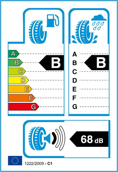 标签上的声波(1-3个)标明轮胎的性能。胎噪最大的(3个声波)将会受到处罚。现在国内销售轮胎达到68-72分贝的都是比较顶尖了